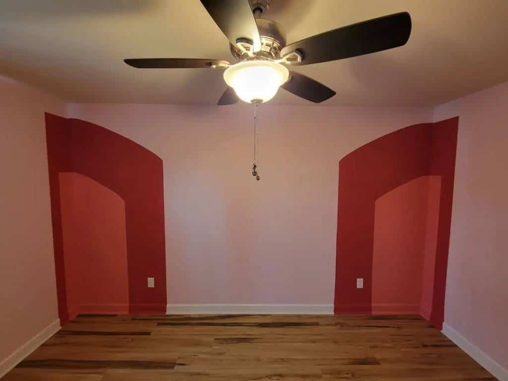 We completed a full repaint of this drywall bedroom, transforming a bold, multi-tone layout into a clean, modern space. The walls were thoroughly prepped with patching, sanding, and spot-priming to create a uniform surface after removing the strong red accent shapes. We applied Sherwin-Williams Emerald Interior (eggshell finish) in a versatile soft gray, paired with semi-gloss white trim for added durability and contrast. This update delivers a calmer, more contemporary mood while complementing the room’s updated flooring and natural light.